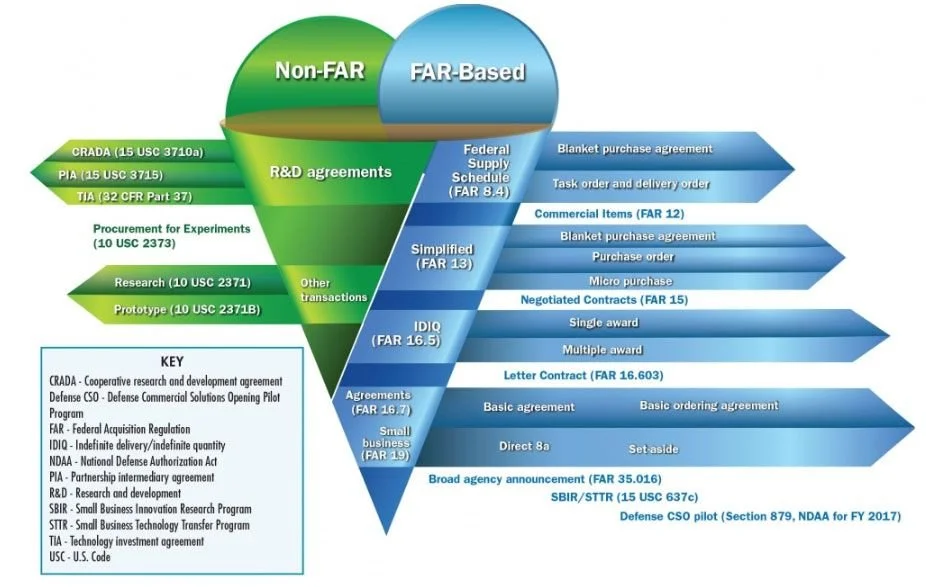 “The Contracting Cone outlines the full spectrum of Federal Acquisition Regulation (FAR) and non-FAR contract strategies, and supporting materials provide details about each strategy. The goal of the tool is to provide visibility into new or lesser-known strategies and ensure that the full range of contract strategies is considered.”
